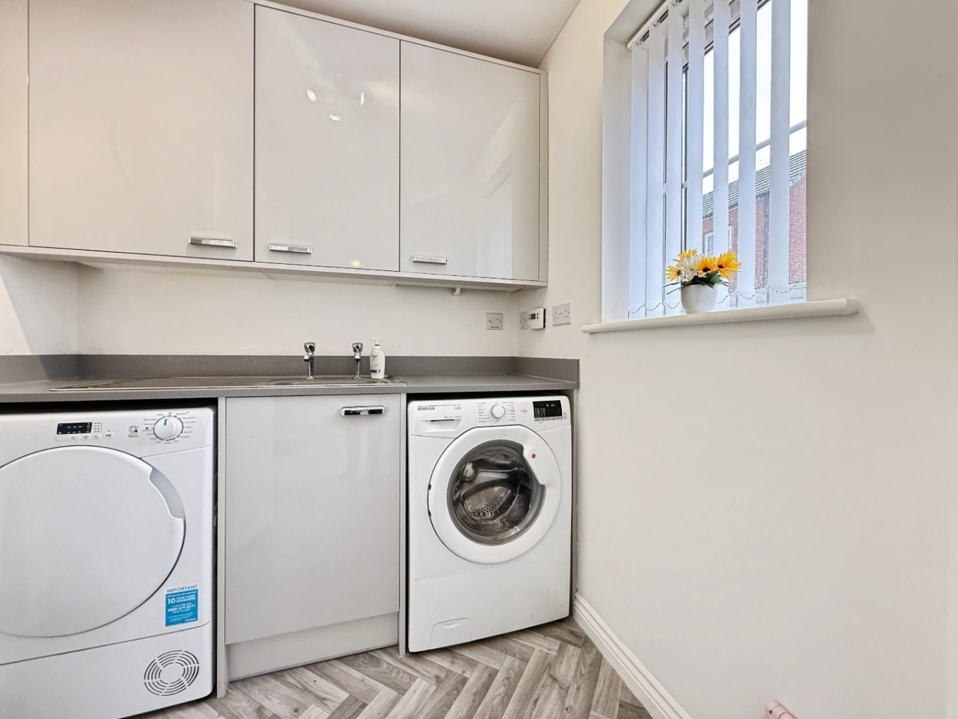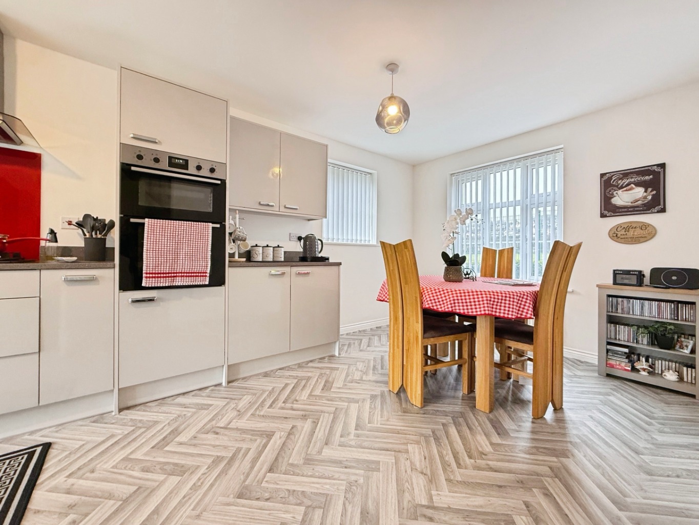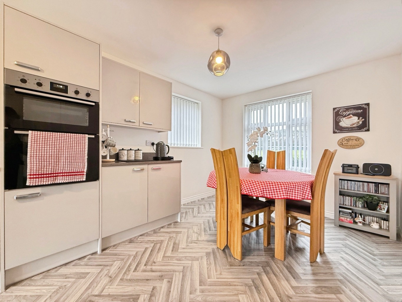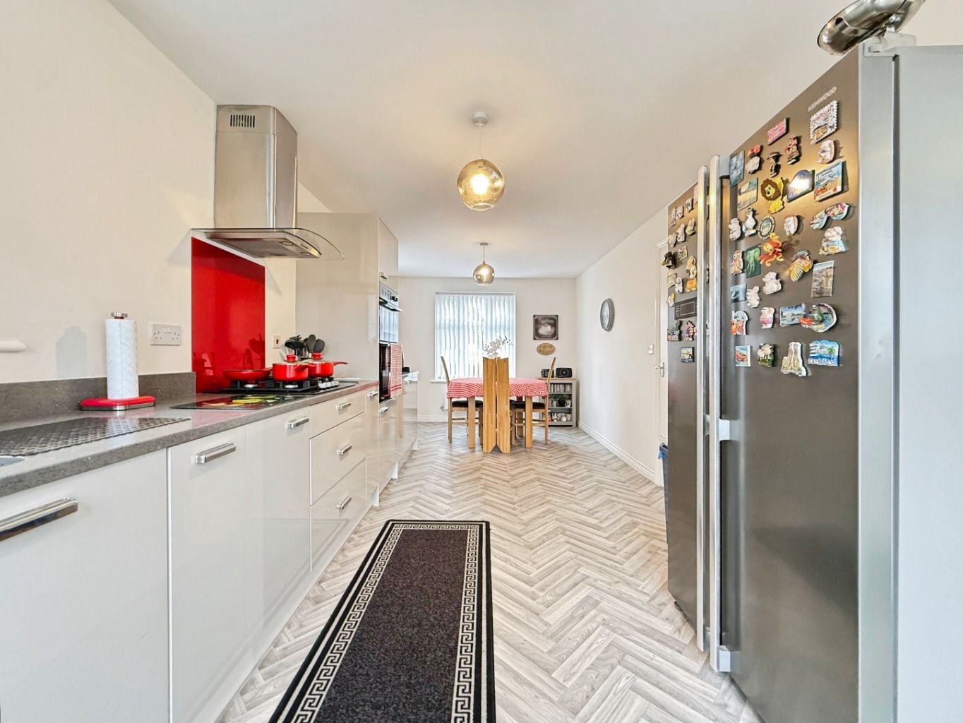The heart of the home is the impressive recently fitted kitchen, finished in sleek high-gloss units with luxurious quartz worktops. Designed with both practicality and modern aesthetics in mind, the kitchen offers ample storage and preparation space, complemented by a separate utility room for added convenience.