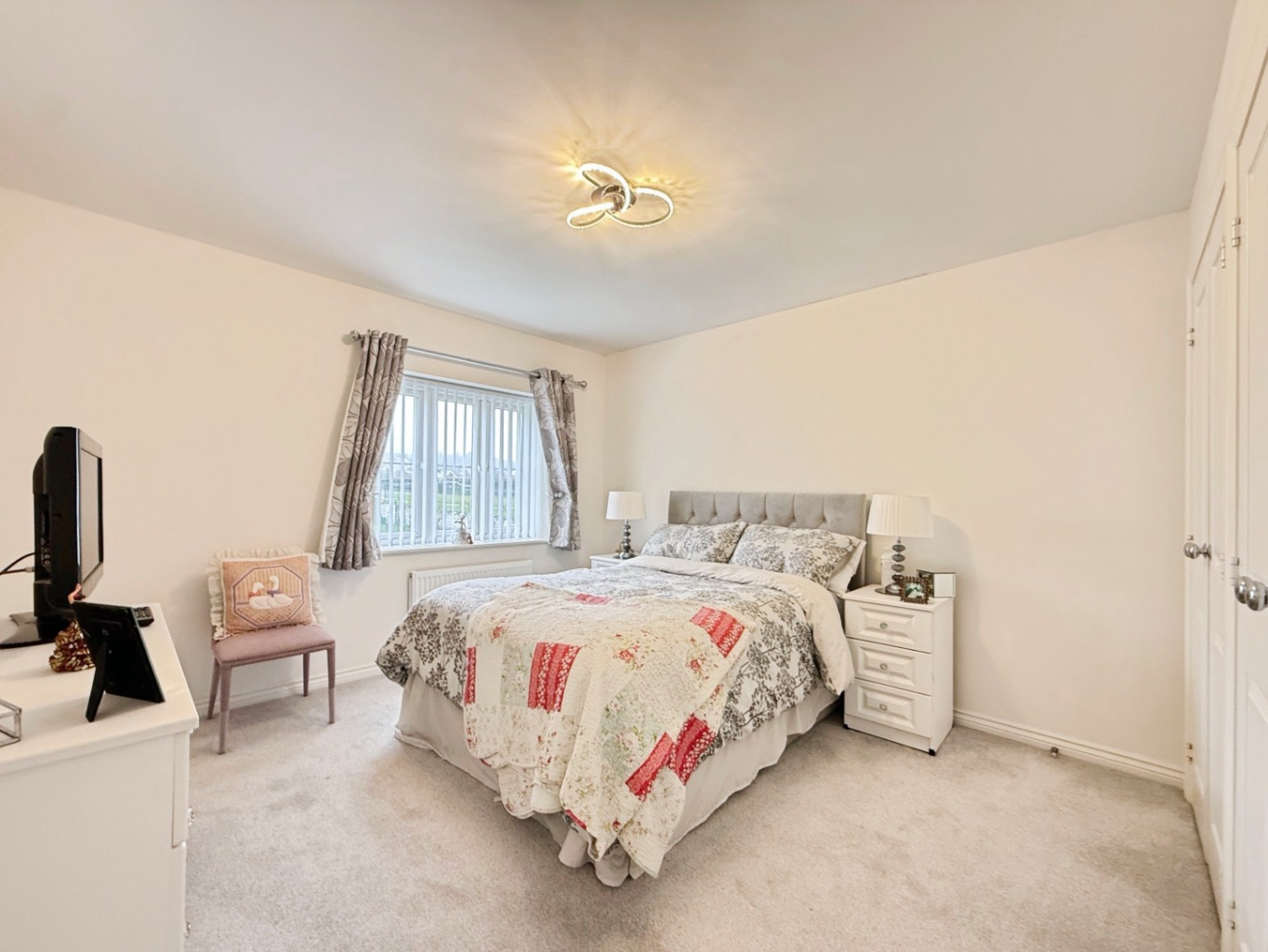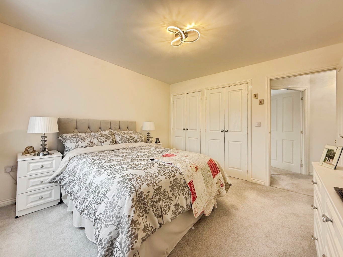 Carpeted underfoot, radiator, uPVC double glazed window to front elevation, radiator, built in wardrobes, doors into: