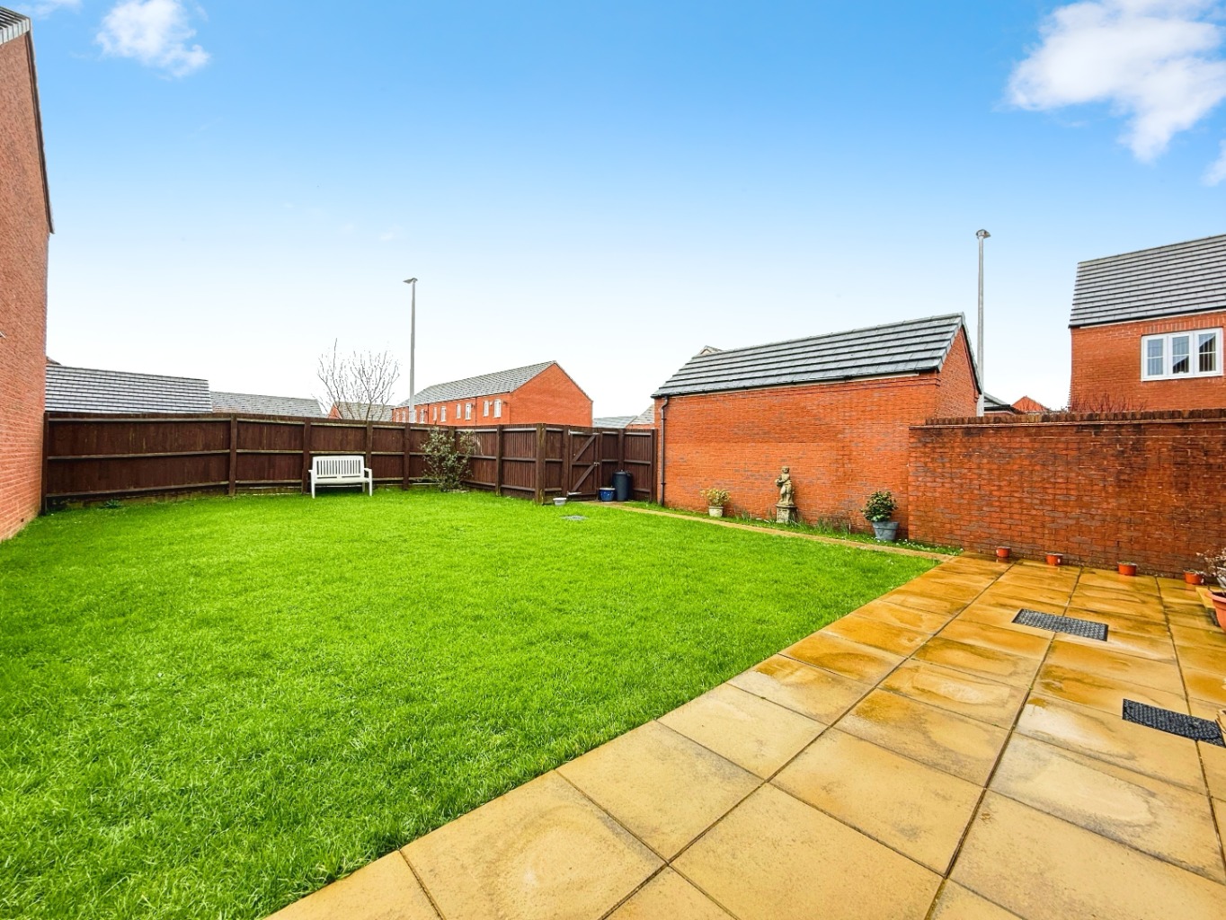 Externally, the enclosed rear garden is sunny, low-maintenance, and beautifully maintained—perfect for outdoor dining and family enjoyment. The property further benefits from a driveway and a single detached garage, providing ample off-road parking and additional storage.