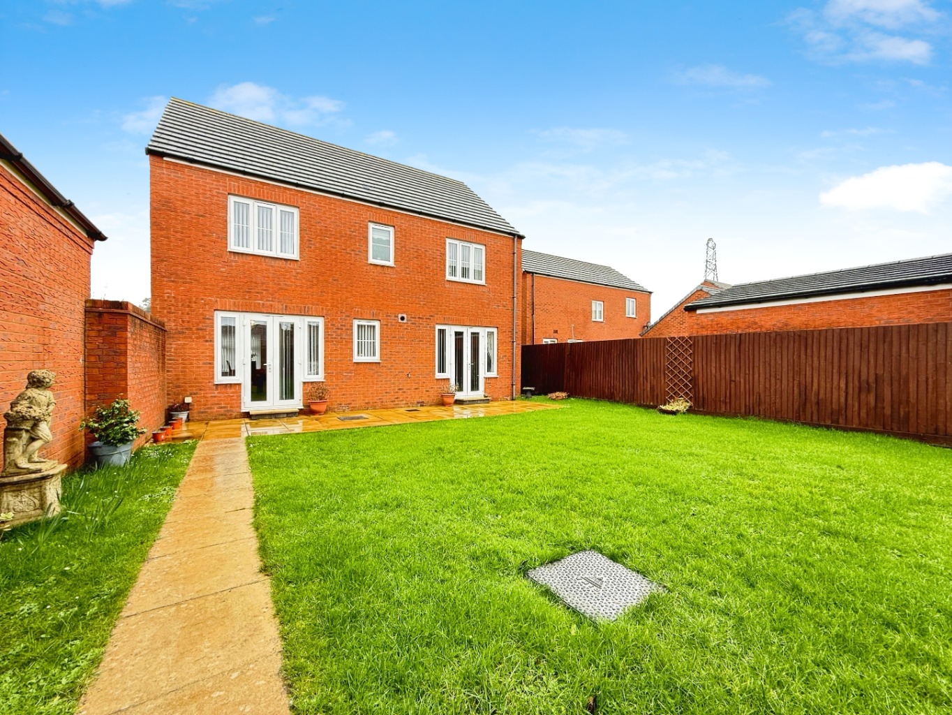 Upstairs, the property boasts four well-proportioned double bedrooms. The master bedroom benefits from fitted wardrobes and a contemporary en suite shower room, while bedroom three also features fitted wardrobes. The remaining bedrooms provide excellent space for family members or guests.