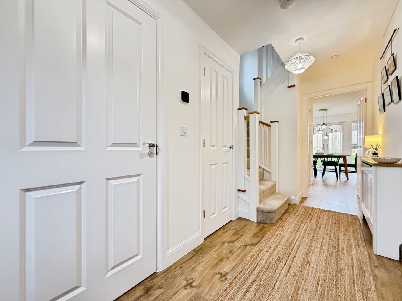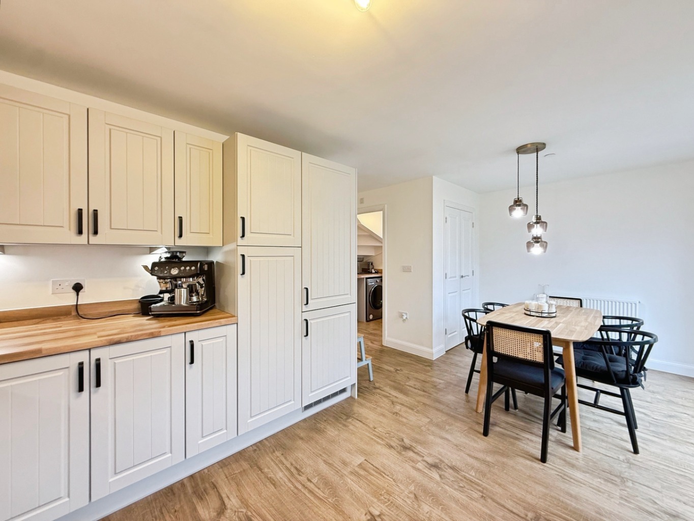 The heart of the home is the stylish open-plan kitchen, complete with integrated appliances and sleek cabinetry, ideal for both entertaining and everyday living. A separate utility room adds practicality, keeping the main living space clutter-free.