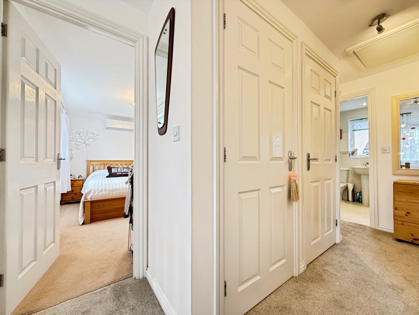 Carpeted underfoot, uPVC double glazed window to front elevation, cupboard for storage, airing cupboard housing water tank, doors into: