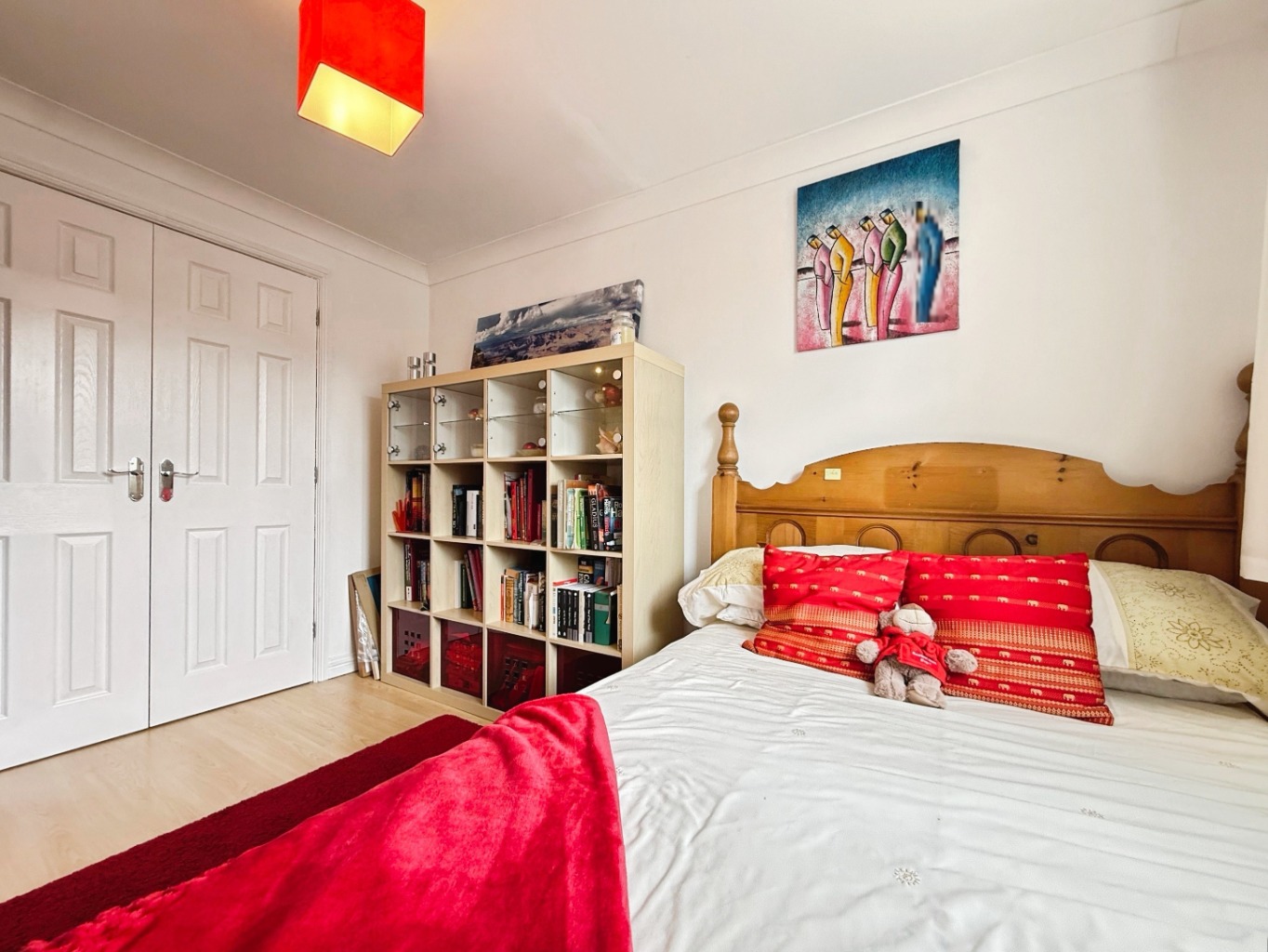 Laminate flooring underfoot, radiator, uPVC double glazed window to front elevation, built in storage cupboard.