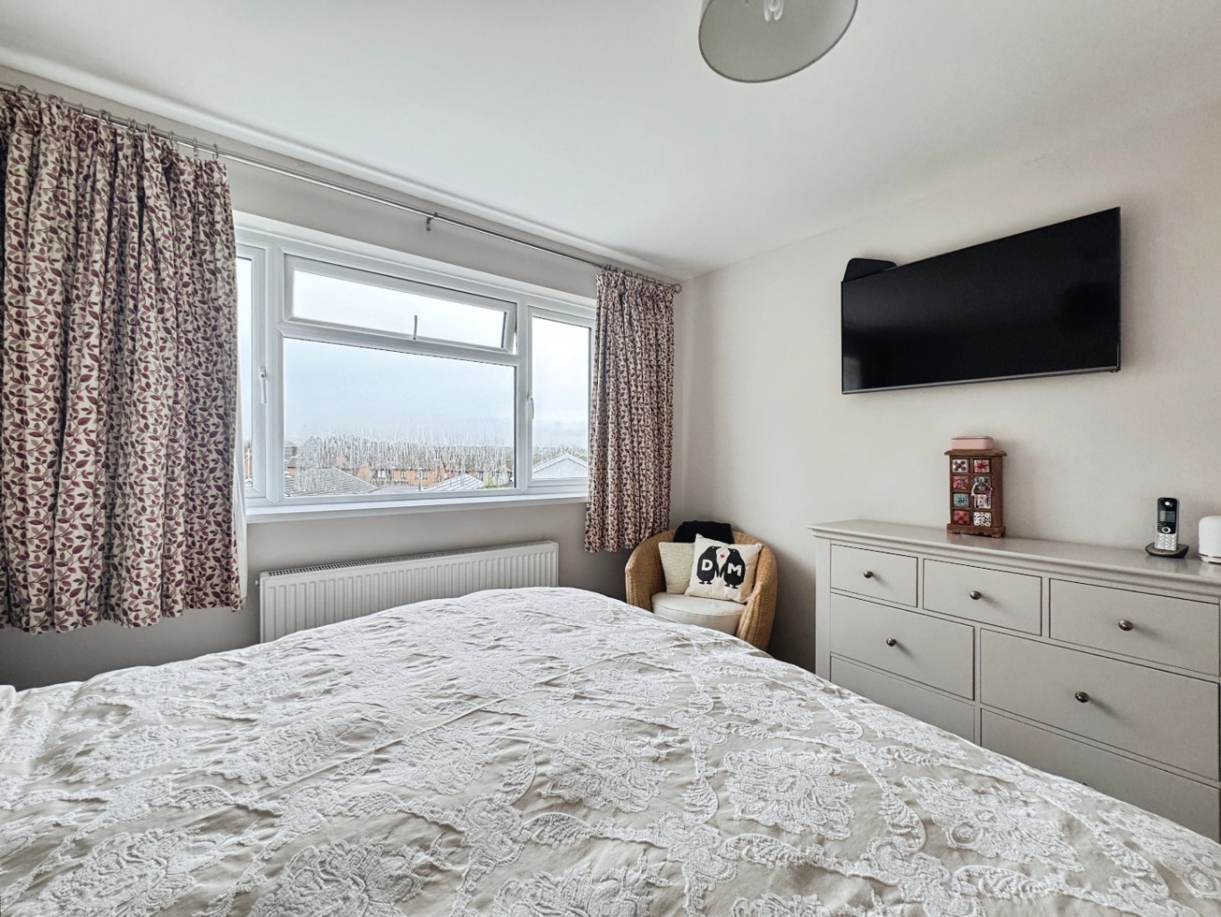 uPVC double glazed window with estuary views, radiator, wall mounted tv air is and socket, built in double wardrobes.