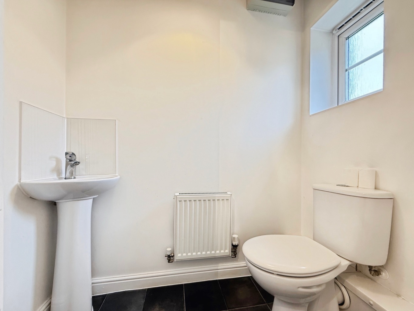 Fitted with a white two piece suite comprising of W/C, pedestal wash hand basin, radiator, uPVC double glazed frosted window to front elevation, extractor fan.