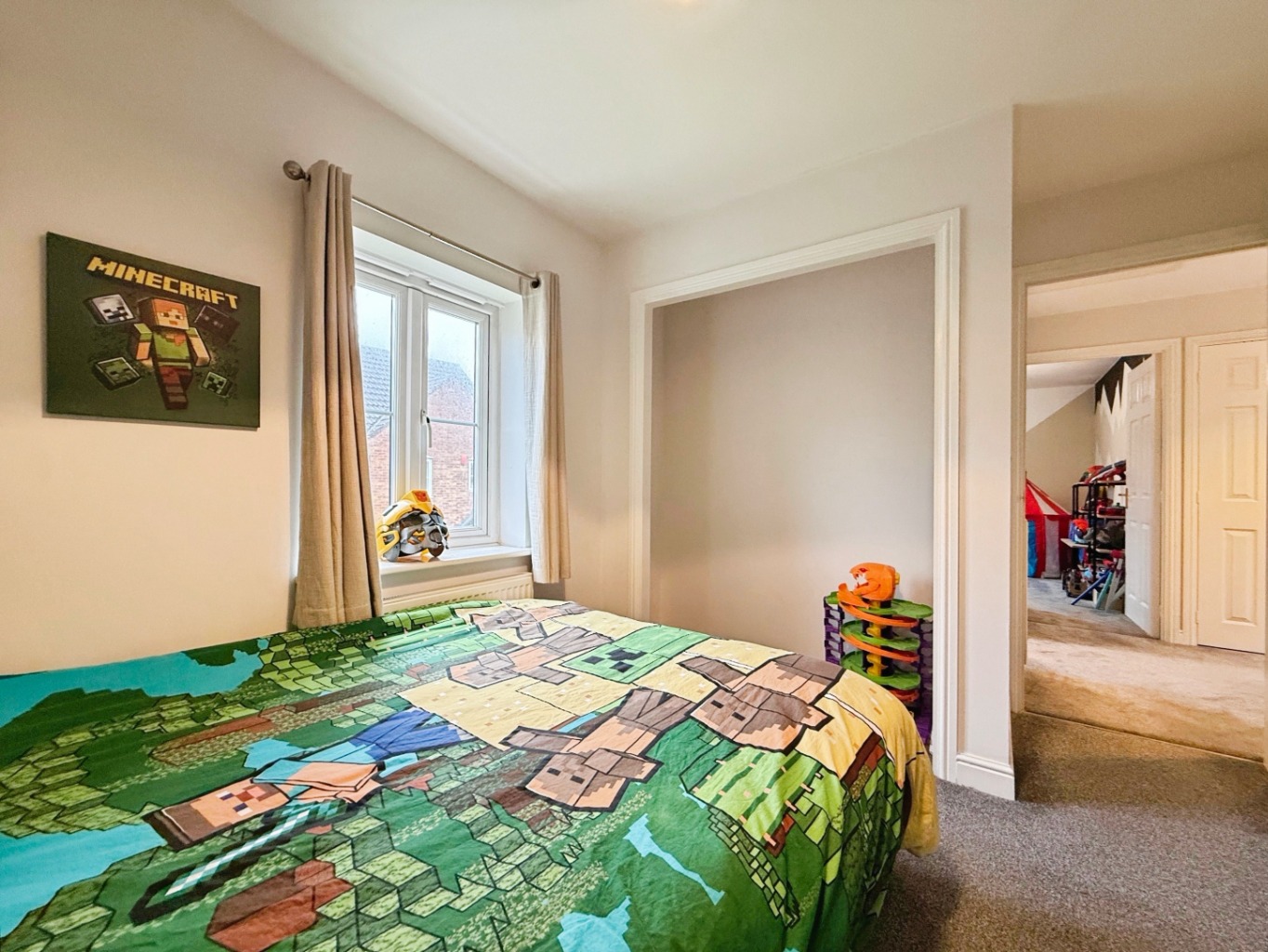 Carpeted underfoot, uPVC double glazed window to front elevation, built in wardrobes, radiator.