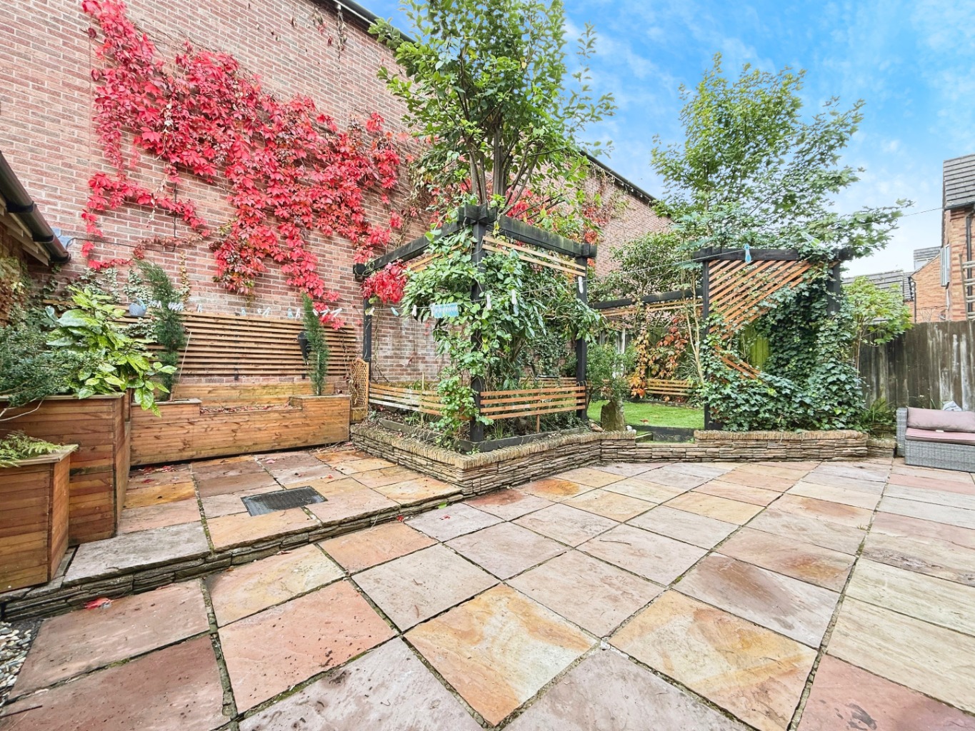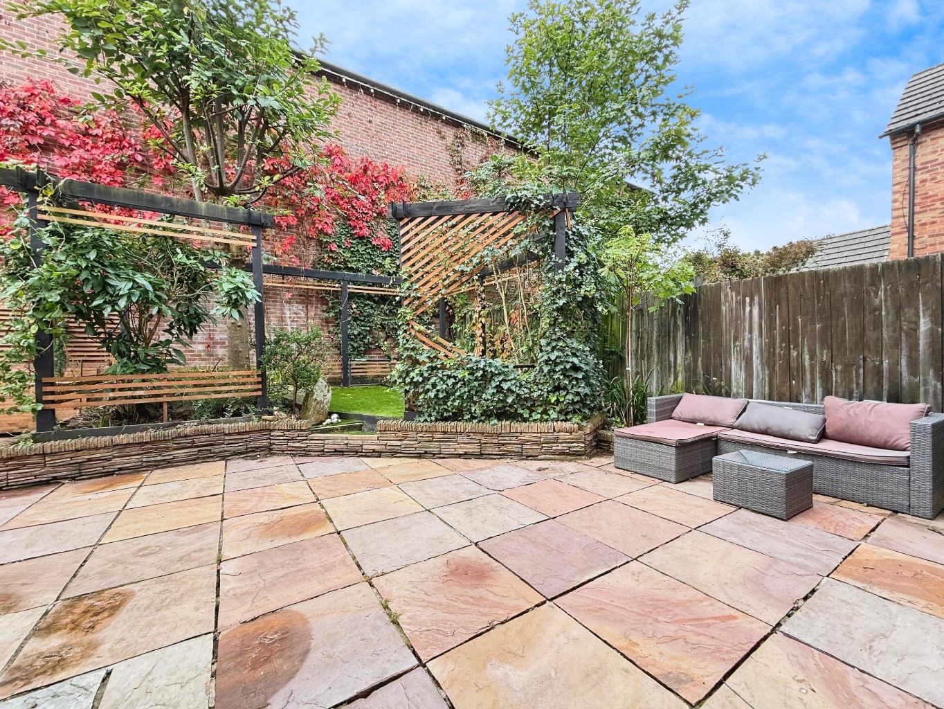 Outside, the low-maintenance rear garden is thoughtfully designed with a patio area, artificial lawn, and a covered pergola—ideal for year-round enjoyment.