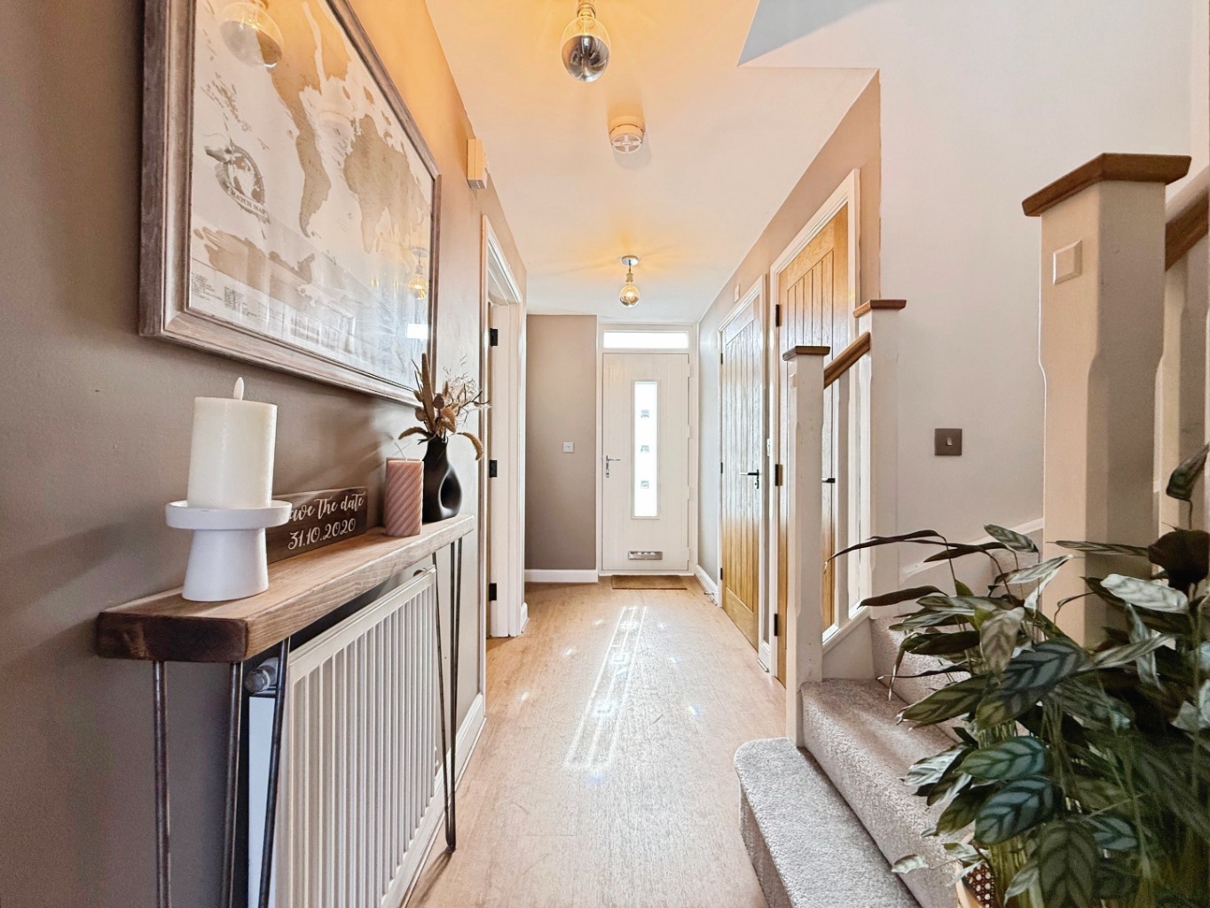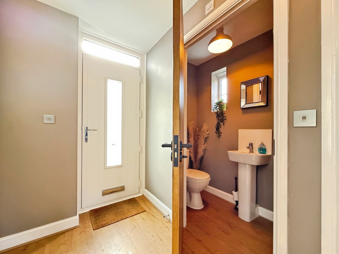Beautifully presented throughout, the home benefits from a new composite front door, stunning oak internal doors with black accents, fresh decor and a bright, airy layout. The ground floor offers a spacious lounge, welcoming entrance hall, and a convenient downstairs cloakroom.