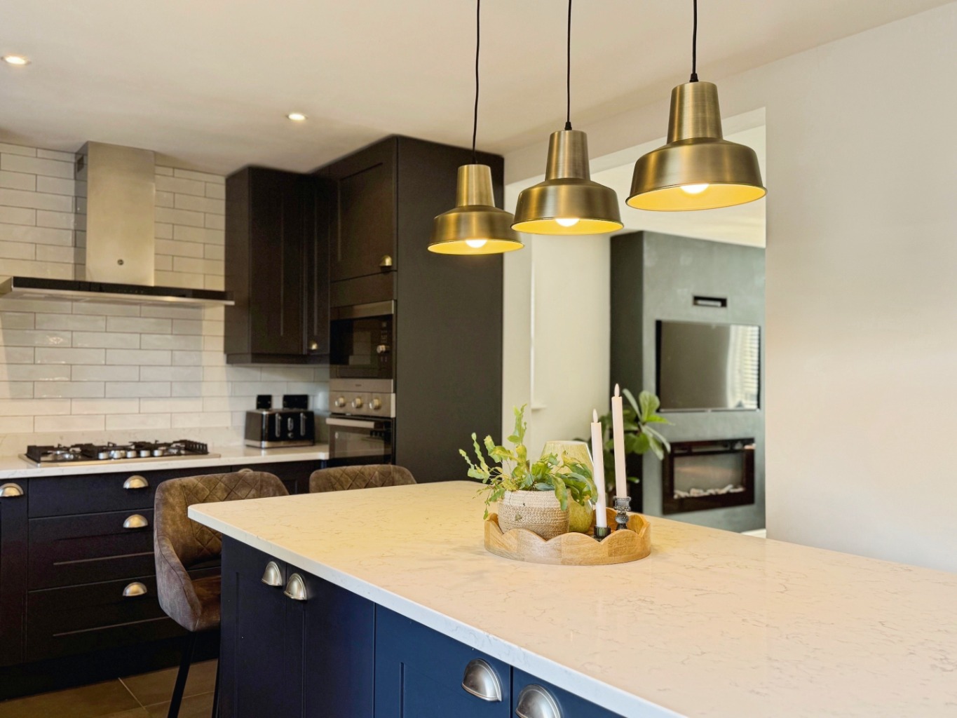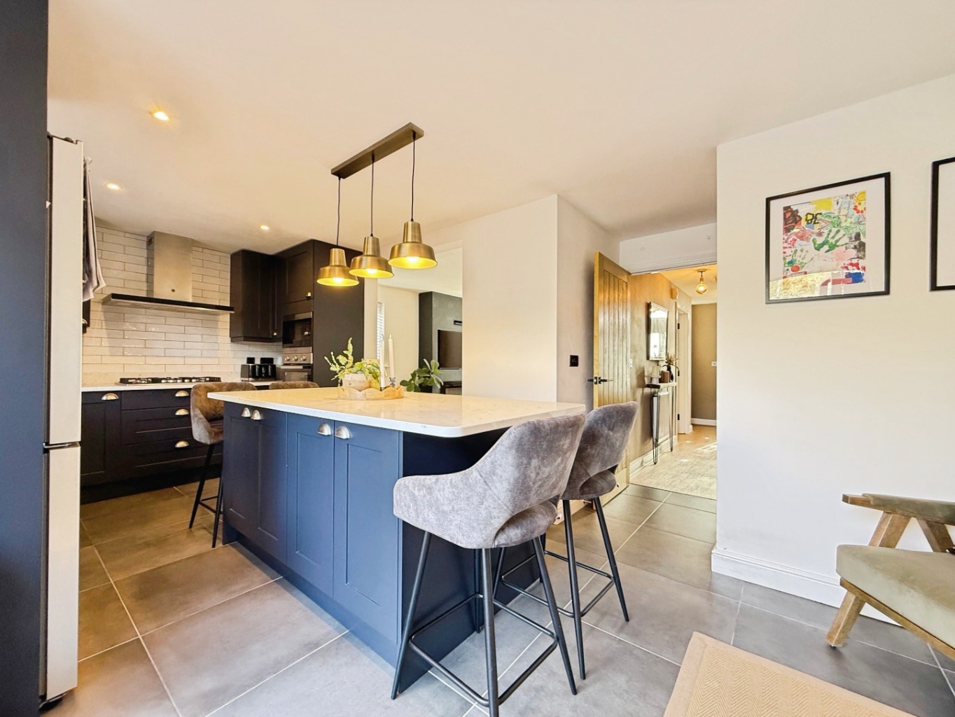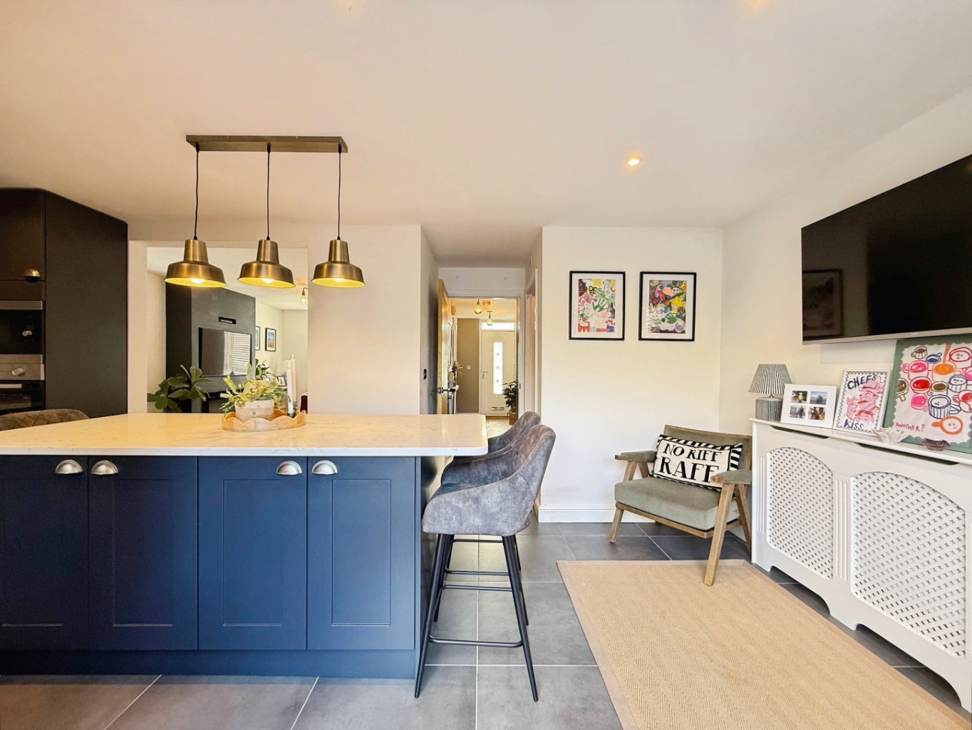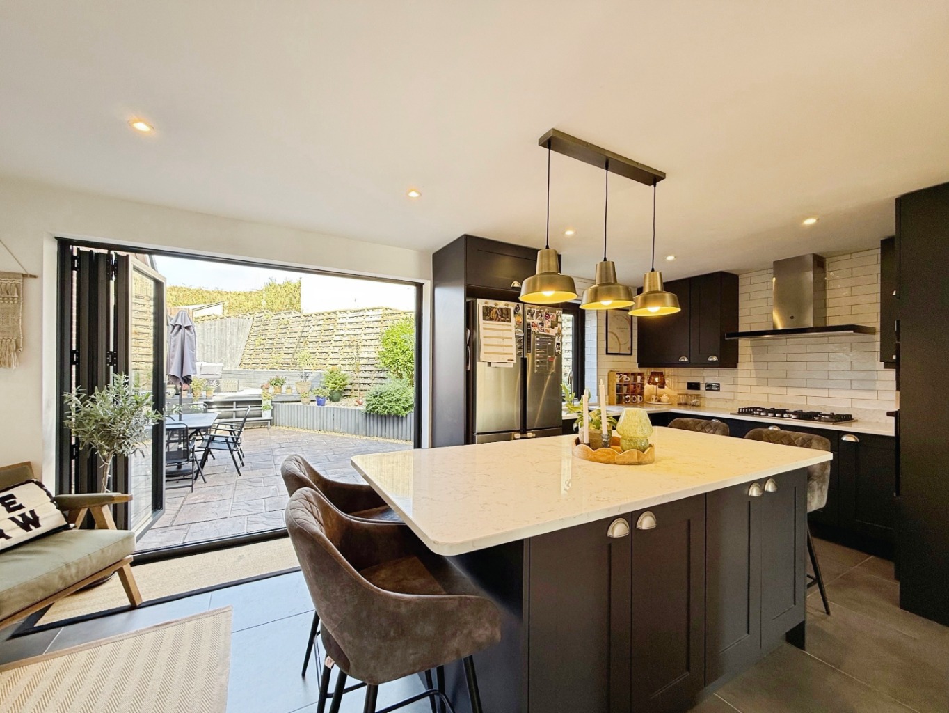 Boasting immaculate presentation throughout, the standout feature of this property is undoubtedly the stylish and extensively upgraded kitchen/diner. This impressive space is fitted with a high-spec kitchen including quartz worktops, integrated appliances, and a central island with breakfast bar seating. The addition of bi-fold doors seamlessly connects the indoor living space to the rear garden, creating the ultimate indoor-outdoor lifestyle experience—perfect for entertaining or enjoying quiet family time.