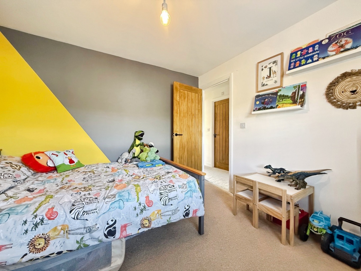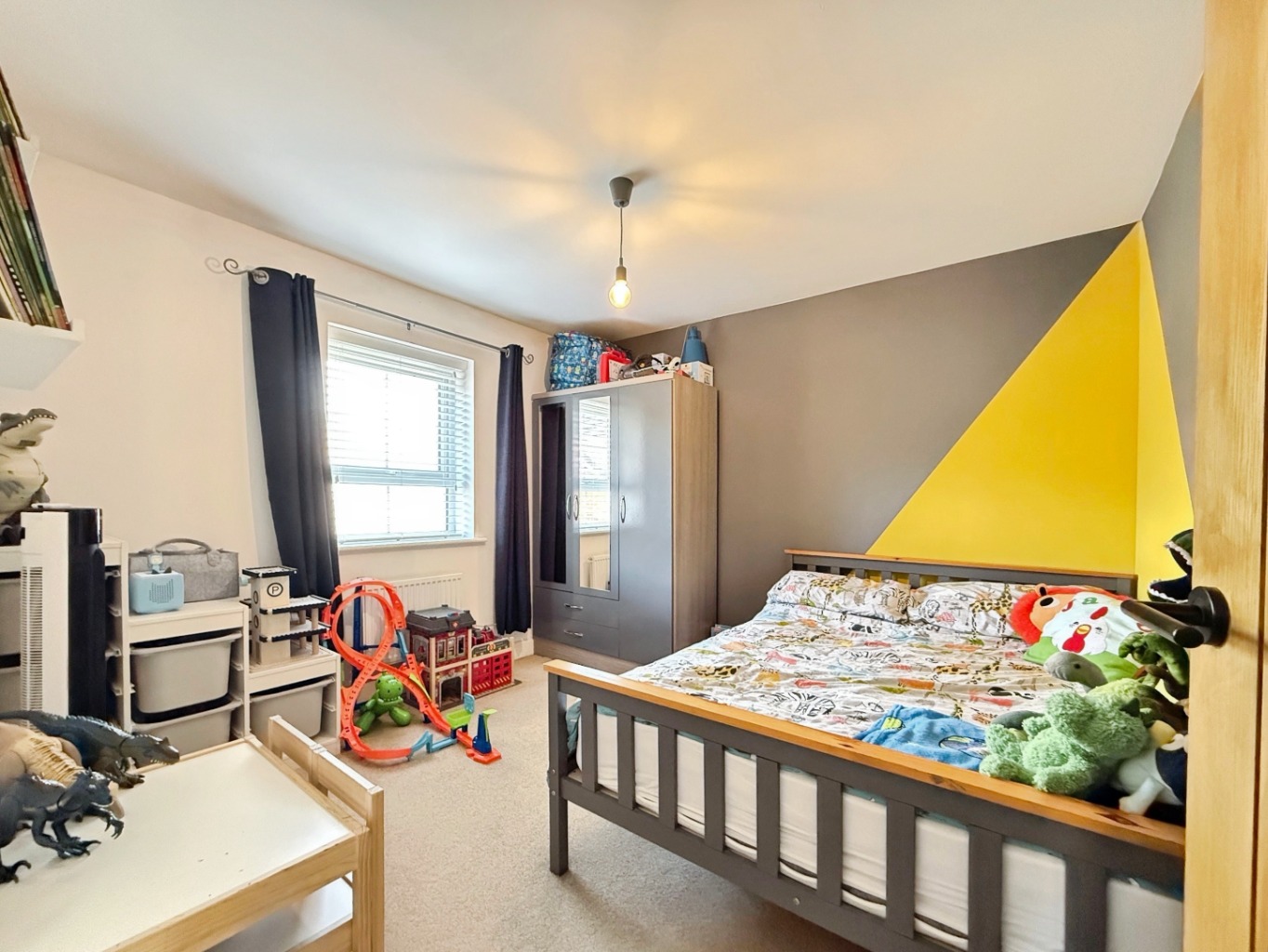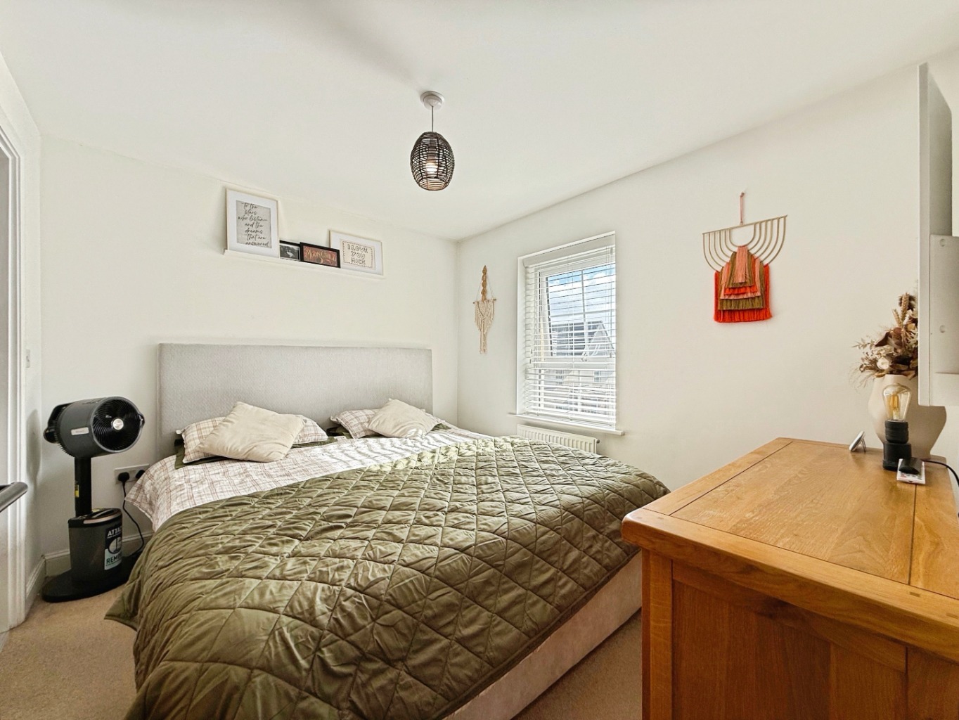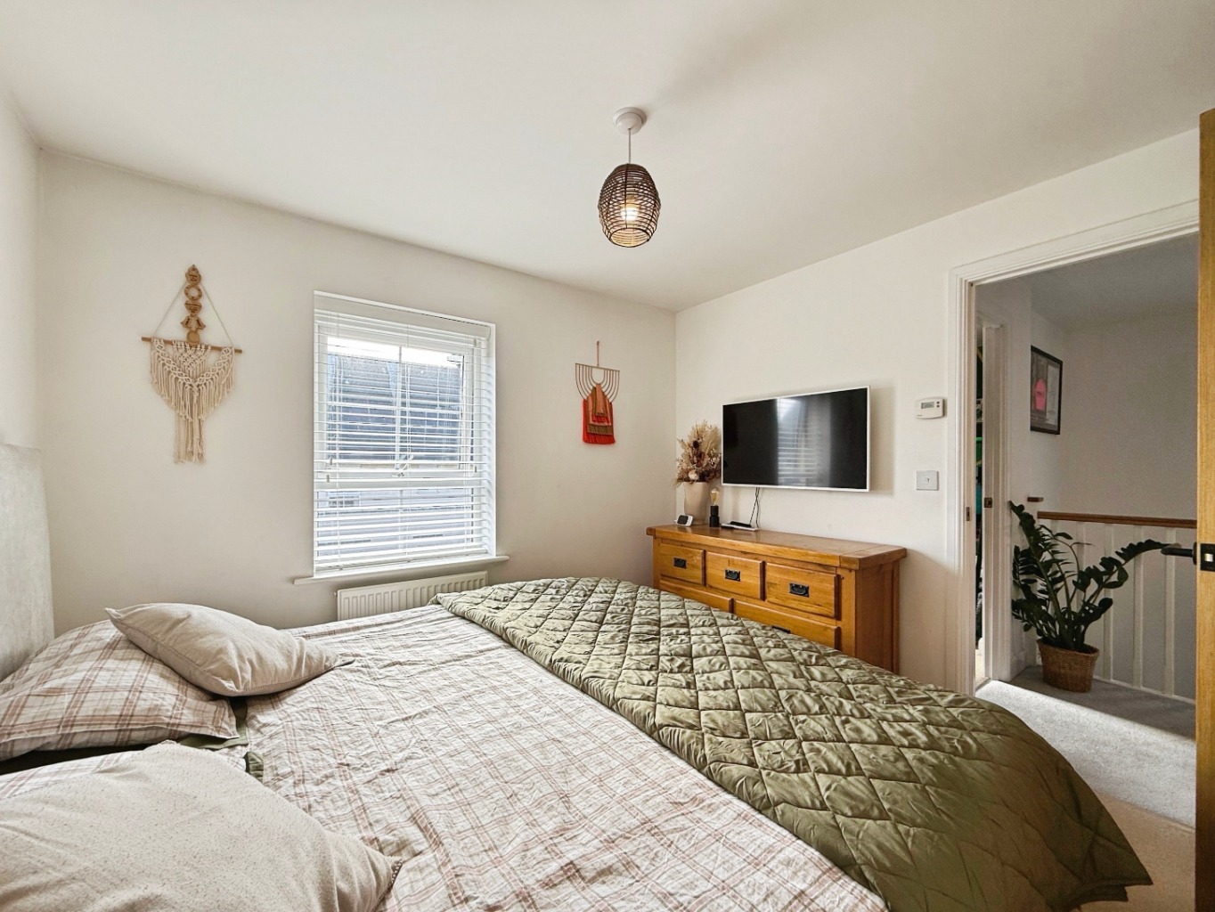Carpeted underfoot, radiator, uPVC double glazed window to front elevation, wardrobe alcove, oak internal door into: