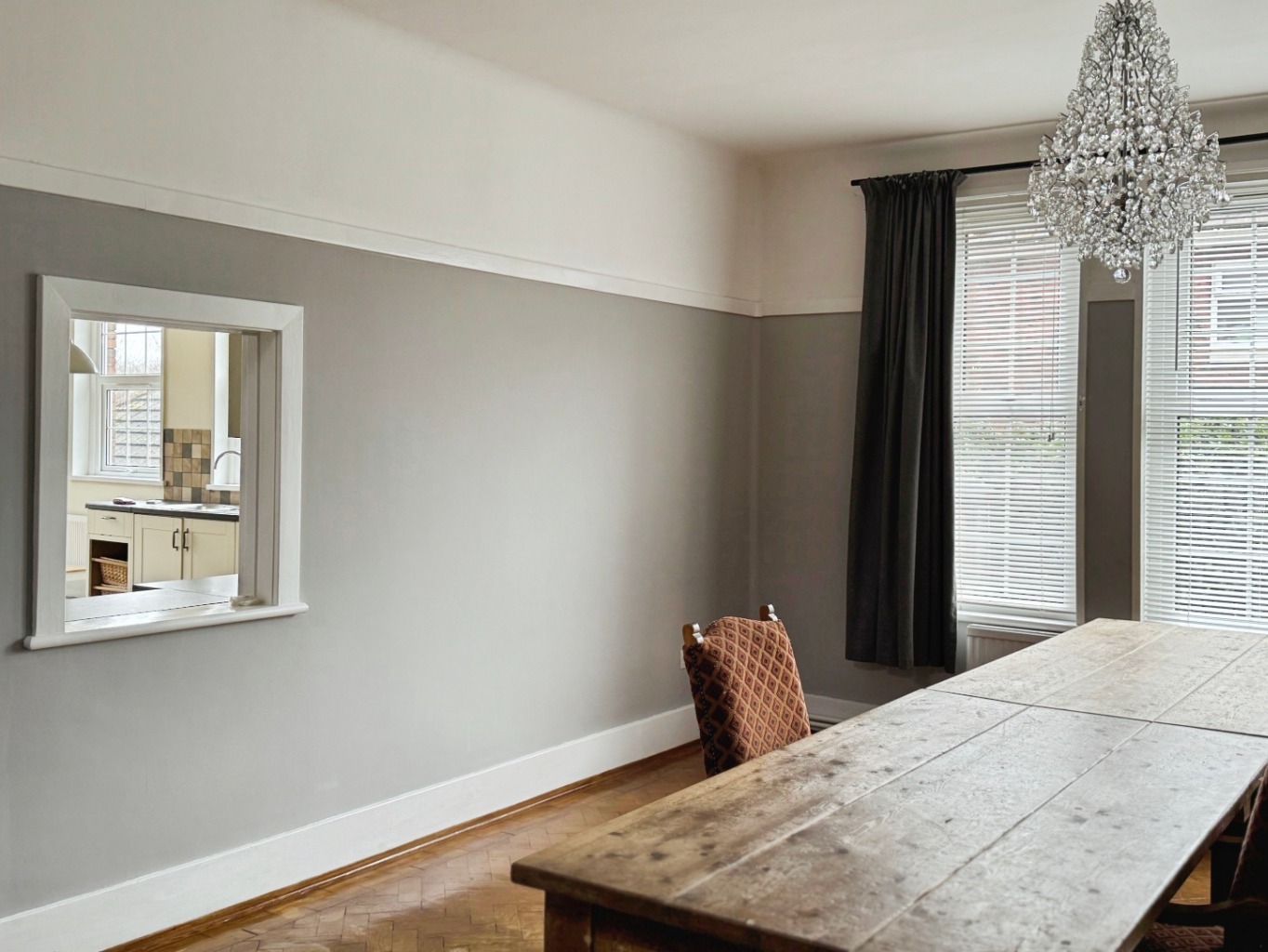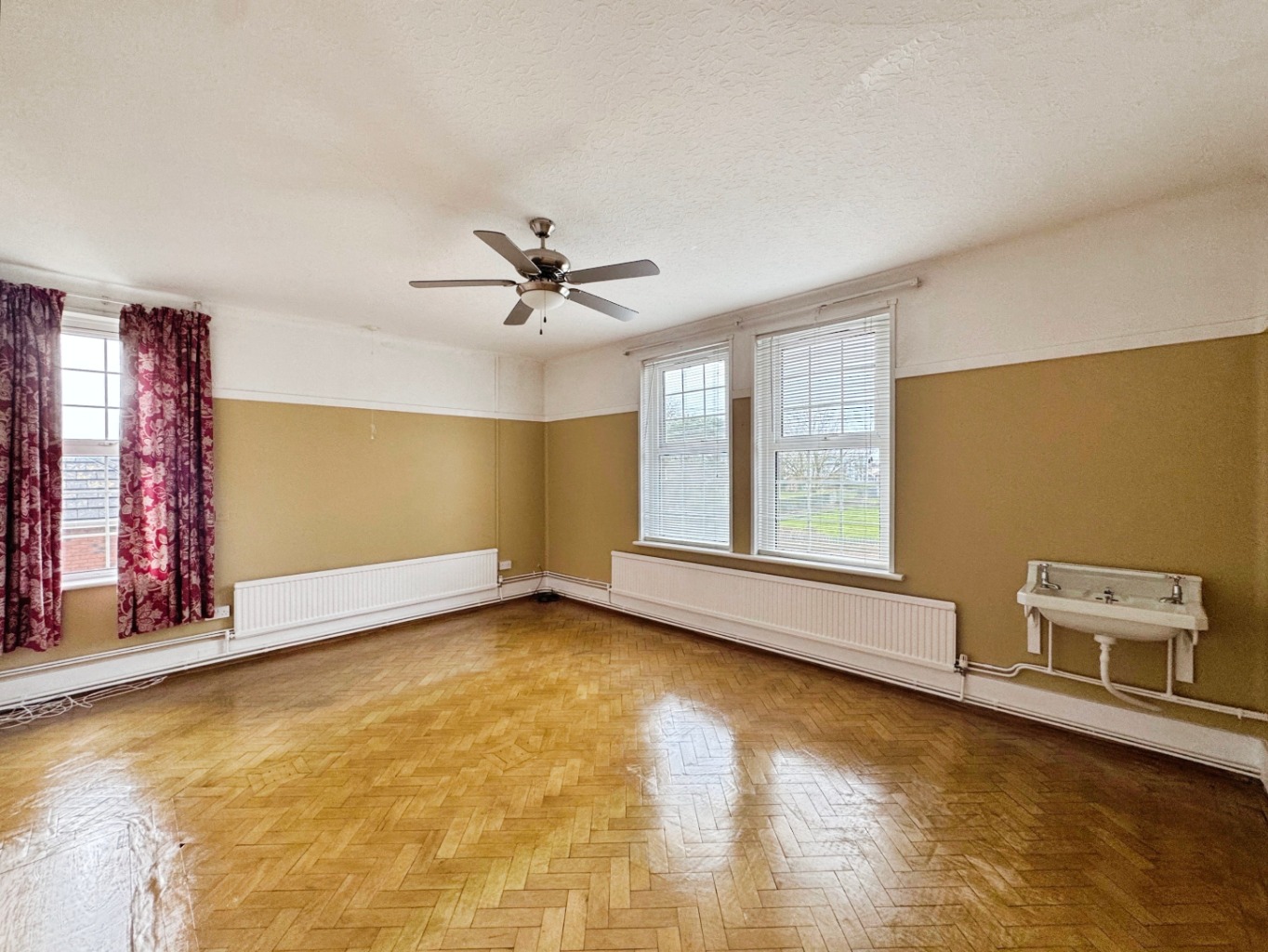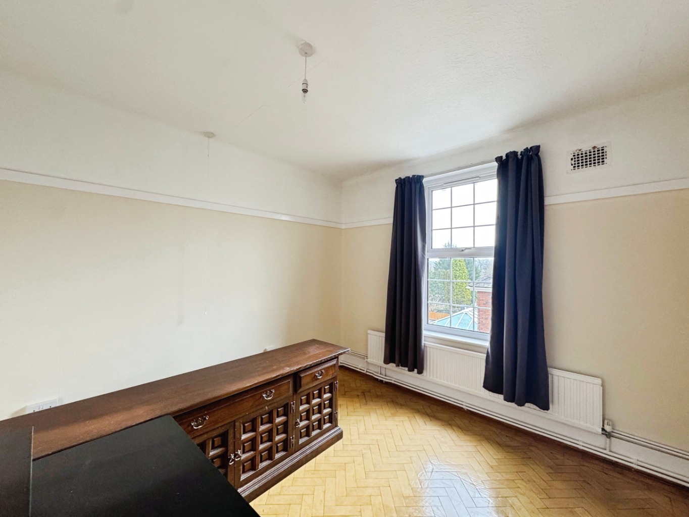 Picture rails, radiator, uPVC double glazed windows x2, solid wood parquet flooring.