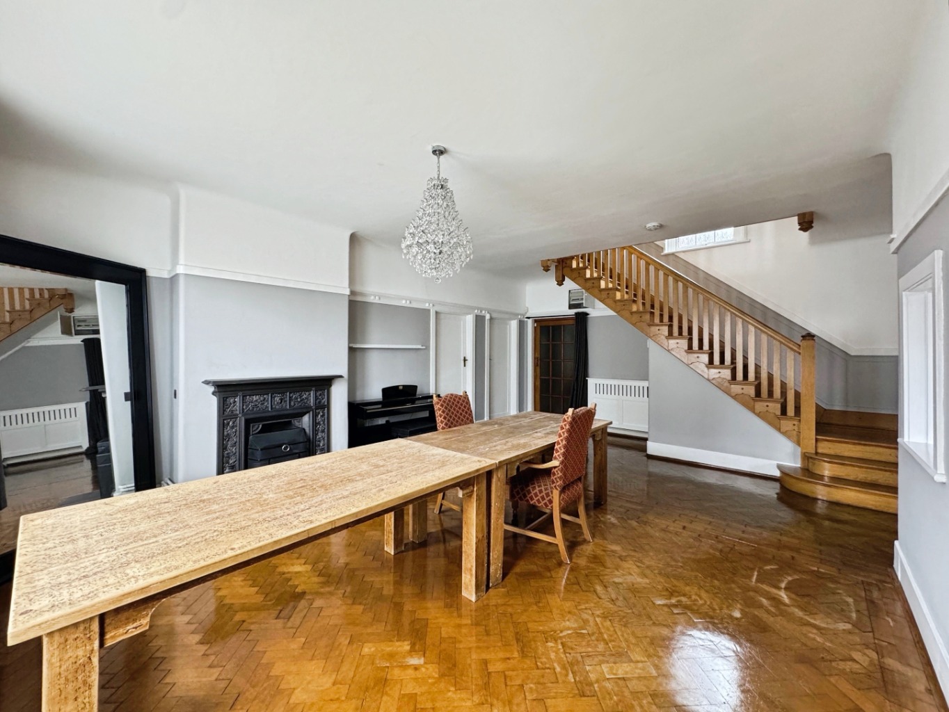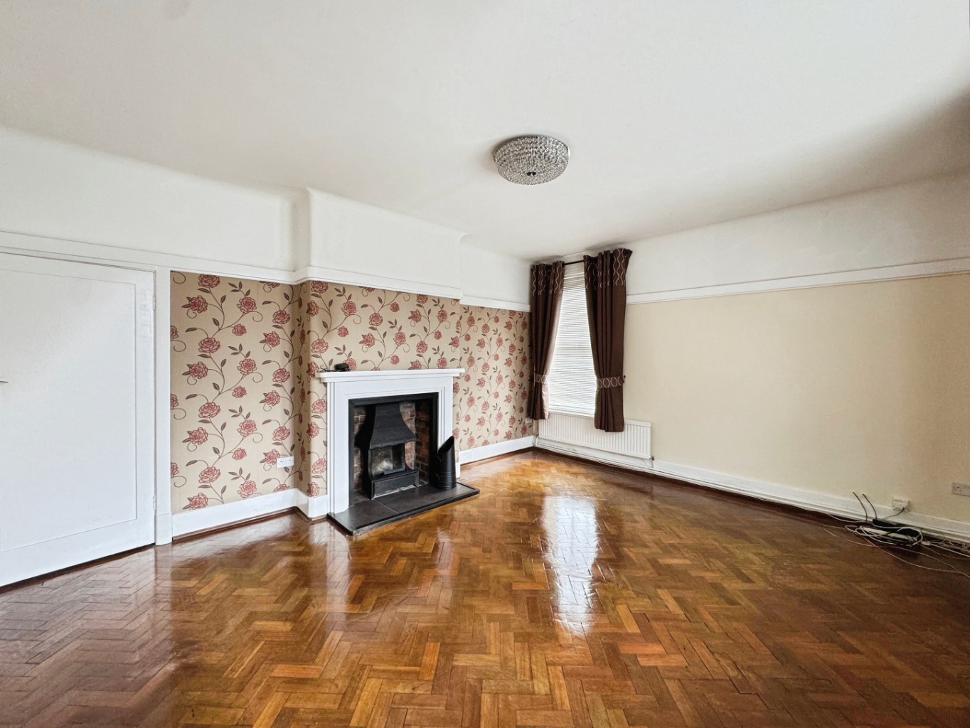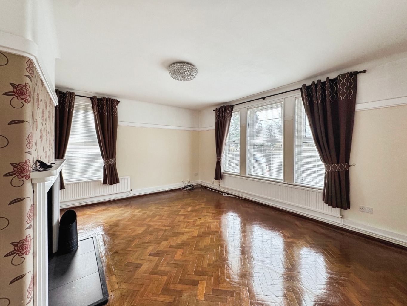 Picture rails, uPVC double glazed windows x 4, radiators x2, solid wood parquet flooring, fireplace.