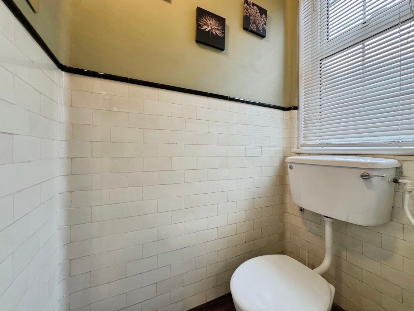 Obscure uPVC double glazed window, w.c part tiled walls, terrazzo flooring.