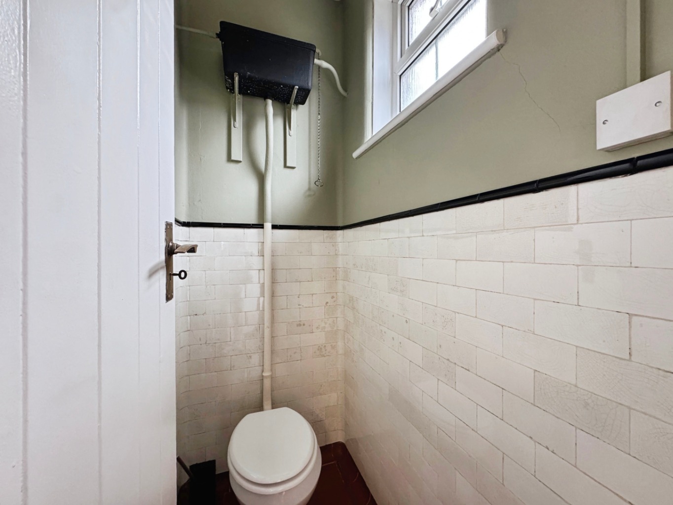 W.c part tiled walls, quarry tiled floor, obscure uPVC double glazed window.
